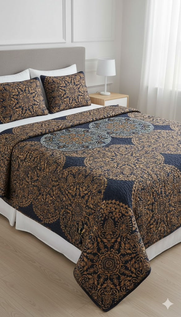 Luxury Navy Blue Printed Bedsheet / Comforter – Elegant & Premium Quality